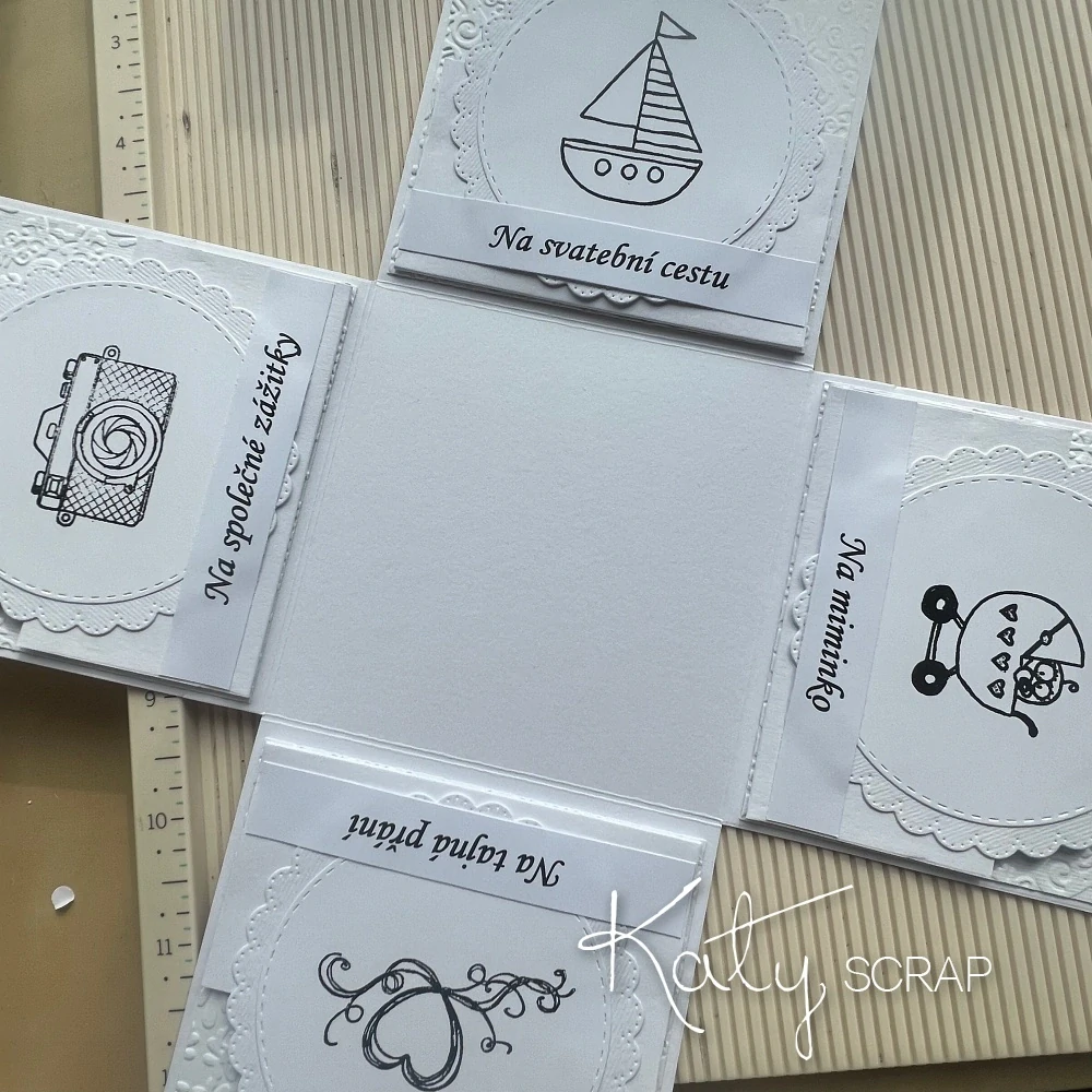 varianty: 4 kapsičky s obrázky- na svatební cestu, na miminko, na tajná přání, na společné zážitky.. TEXTY NELZE MĚNIT!!!