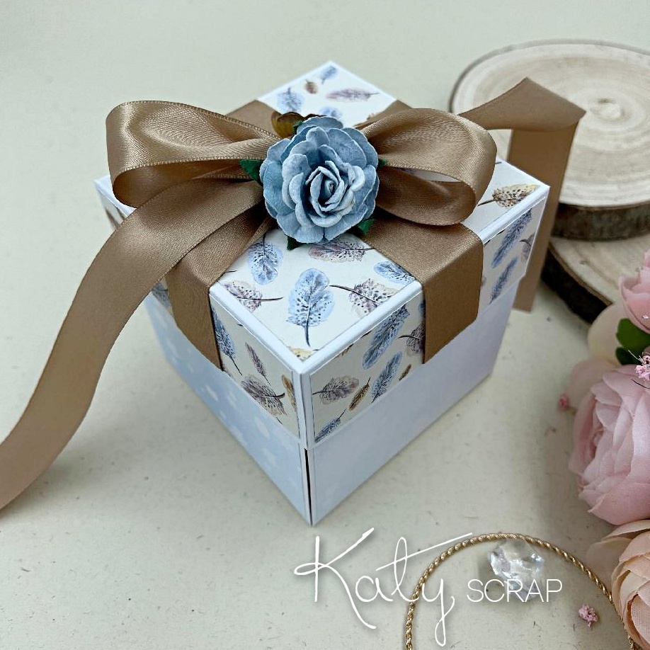 KRABIČKA PRO MIMINKO.. papír s jemnými peříčky v barvě krémové až hnědé, doplněné světle modrou